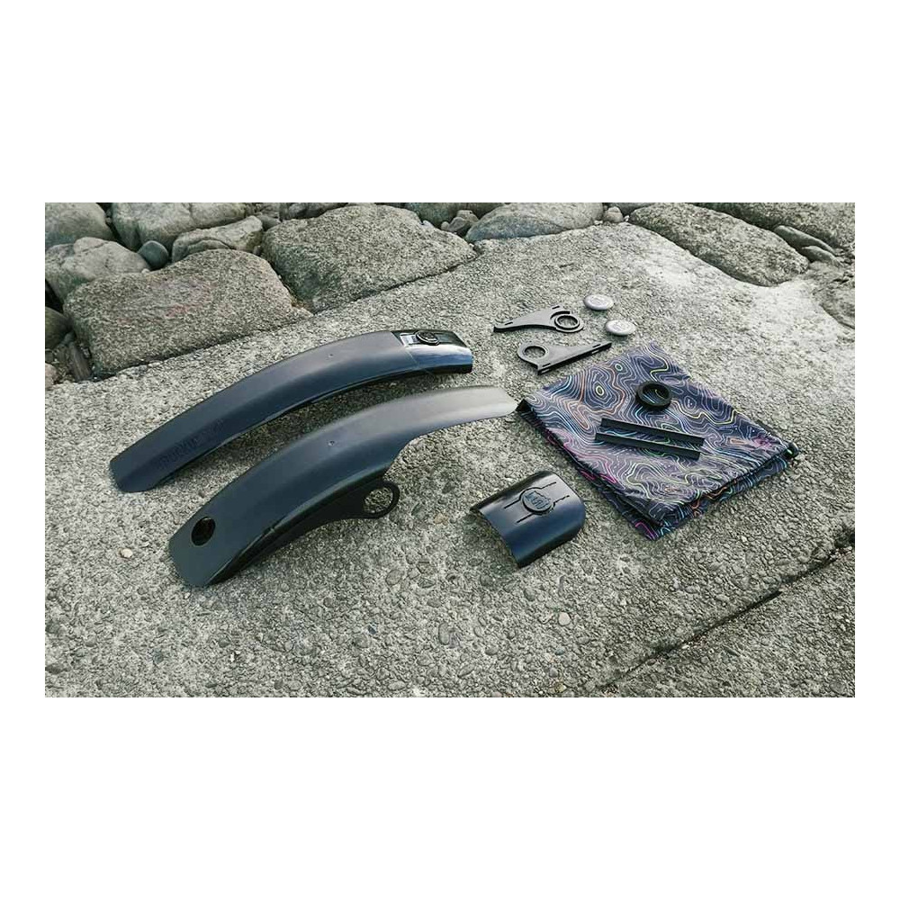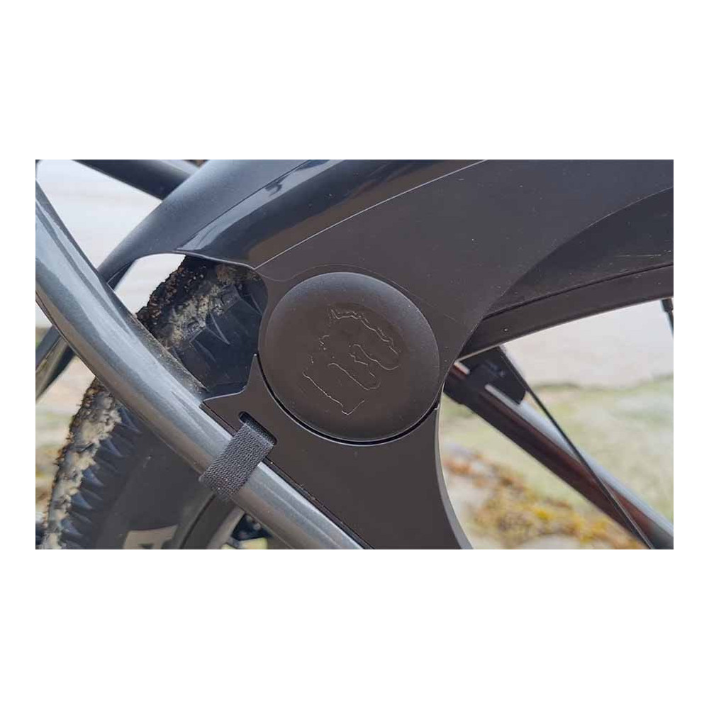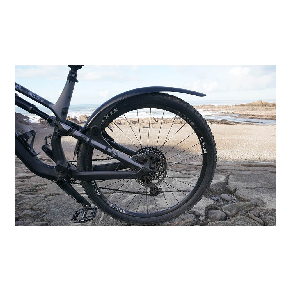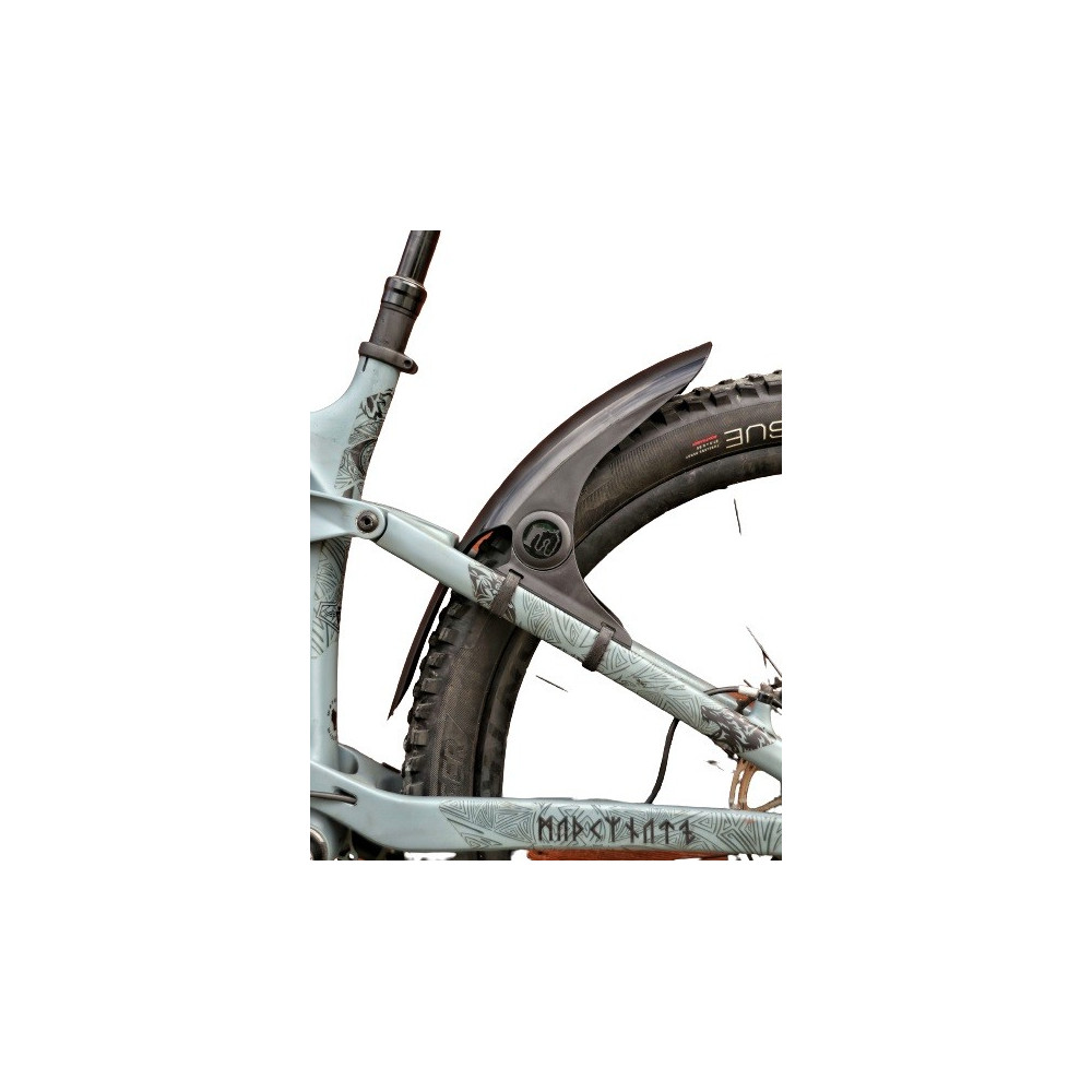Unikátní plastový blatník vhodný pro horská kola o velikosti 26" až 29". Blatník má dobrou tuhost, protože se jedná o výlisek. Tvar blatníku maximálně kopíruje plášť kola, takže poskytne velkou účinnost před vodou a blátem. Montáž je jednoduchá prostřednictvím suchého zipu k rámu kola nebo elektrikářskou páskou.
