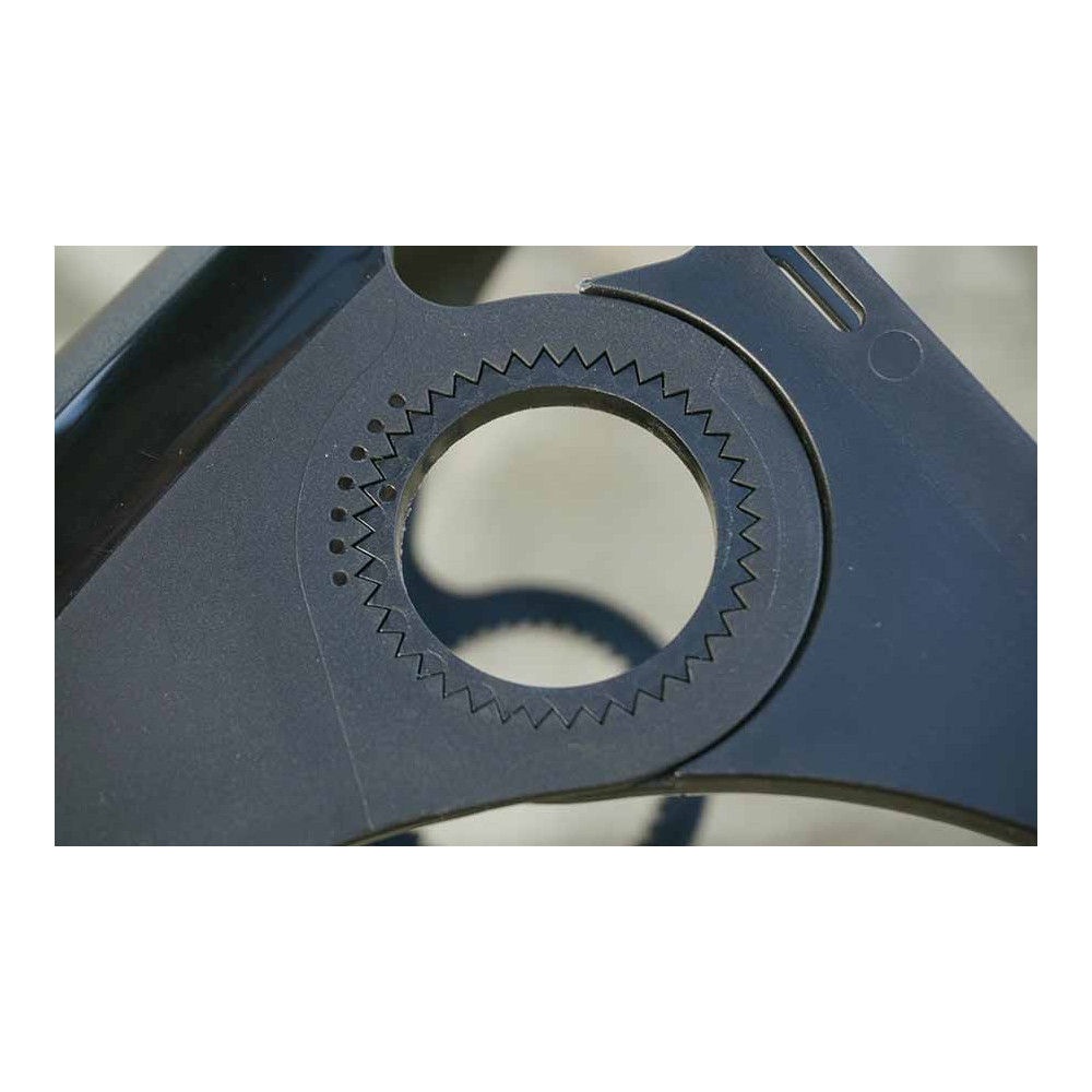 3. Nastavení úhlu sklonu pro jednotlivou stavbu kola(rámu) je možno pomocí zapadajícího uzubeného zámku s ochranou krytkou s logem. Tím si nastavíte správný úhel, tak aby blatník měl dostatek prostoru od pláště kola.