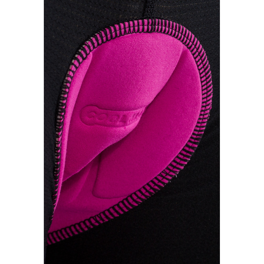 Dámské samostatné vnitřní kalhoty INNER s cyklistickou vložkou Coolmax. Jsou vyrobeny z příjemného funkčního materiálu, který zabraňuje šíření bakterií a nepříjemných pachů. Materiál je velmi lehký, rychleschnoucí, s výbornou prodyšností a je vyroben z 95 % z polyesteru a z 5 % z elastanu. INNER mají plochý šev a protiskluzový silikonový pásek na nohavicích, aby se nevyhrnovaly. Dámská cyklistická vložka Coolmax je bezešvá a velmi komfortní. Je anatomicky tvarovaná, pěna je perforovaná, třívrstvá a její tloušťka je 14 mm v sedací části, 10 mm ve středu a 2 mm v okraji. Kalhoty jsou ideální pro středně dlouhou jízdu na kole.