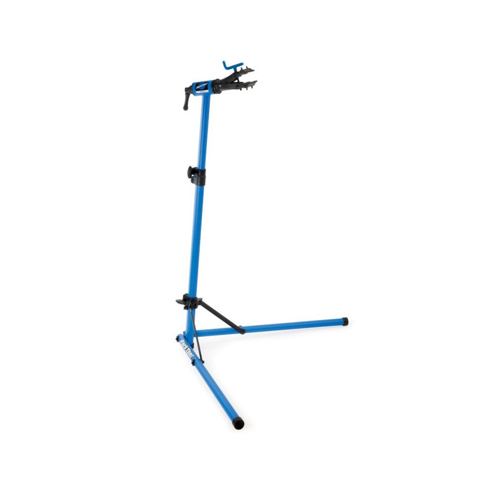 Skládací montážní stojan pro domácí použití, výškově nastavitelný (rozsah 99-145 cm), vyroben z ocelových trubek a profilů. Inovovaný model stojanu PCS-9-2. Plynulá aretace upínače při jeho otáčení kolem vodorovné osy, upínání trubek rámu (rozsah 25-76 mm) do upínače otáčením vratidla se závitem. Hmotnost 7,2 kg, nosnost 36 kg (při těžišti kola uprostřed noh).