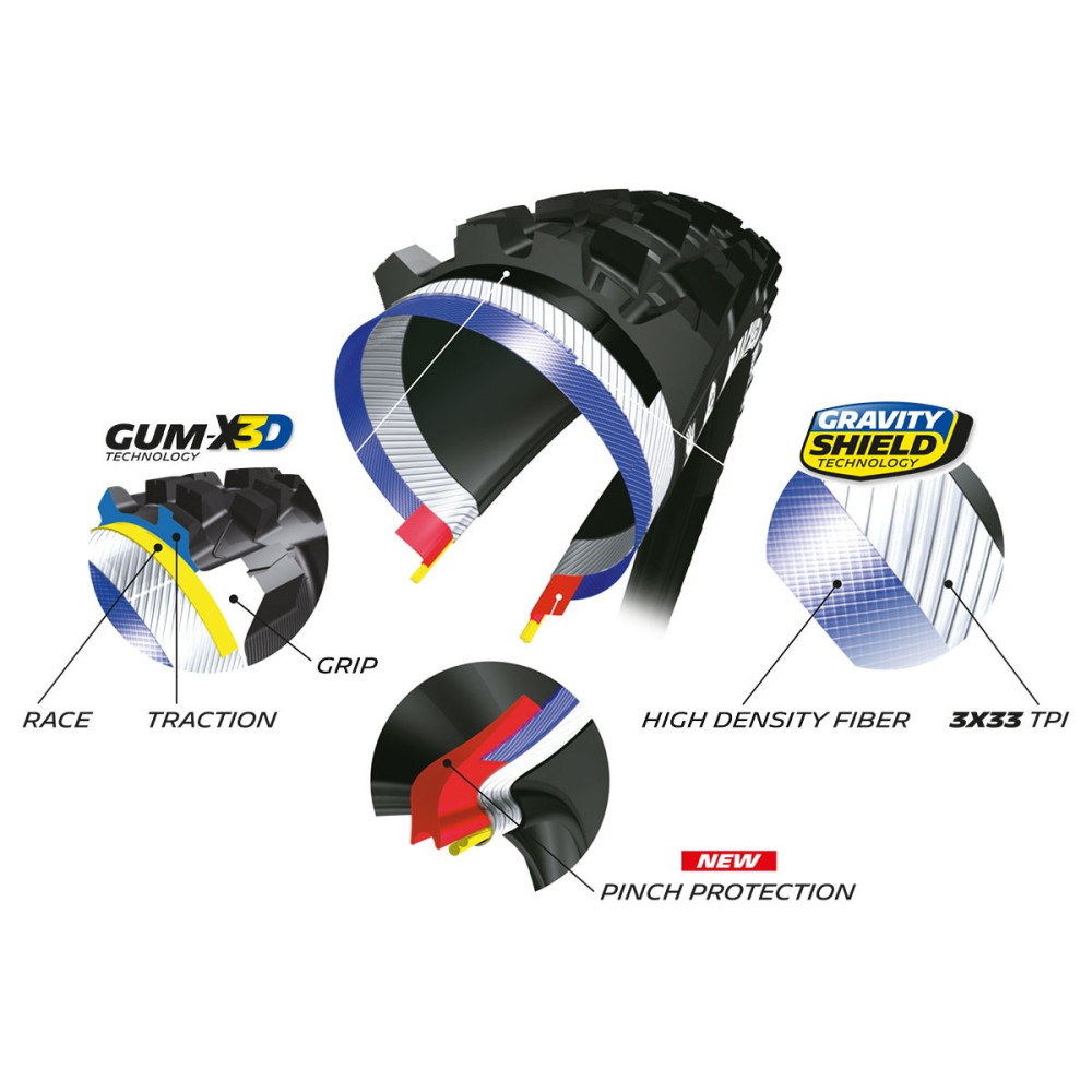 Díky odolnému a lehkému opletu Gravity Shield s hustotou vlákna 3x33 TPI a zesílení s velkou hustotou vlákna, který je specificky navržený pro Enduro.