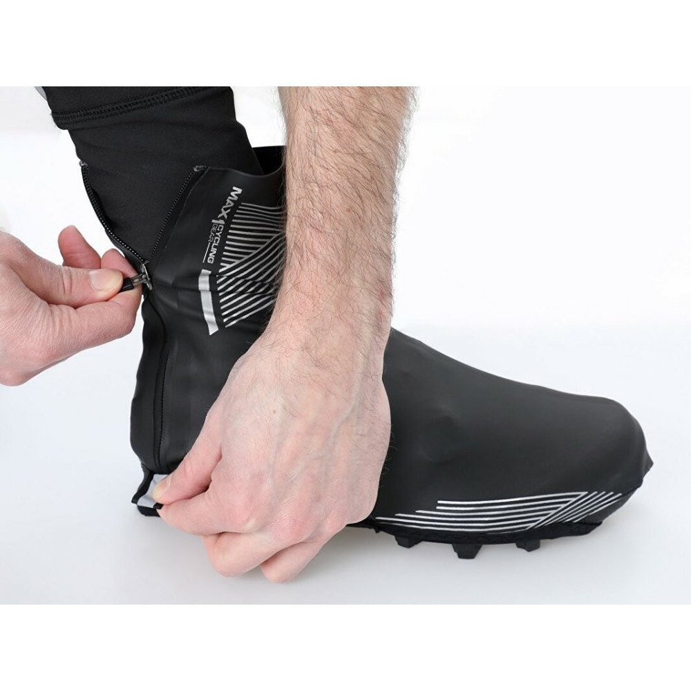 Voděodolné návleky na tretry MAX1 jsou vyrobené z kvalitního elastického materiálu, který doplňuje zip s voděodolnou úpravou a podlepené švy. S návleky se tak nemusíte bát vyrazit do sychravého počasí a vniknutí vody nehrozí ani po dlouhé době v sedle.