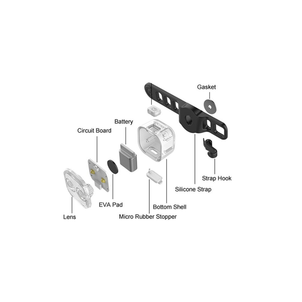 Napájení světla je řešeno integrovanou dobíjecí baterií Li-Ion, která se dobíjí přes microUSB konektor. Svítilnu lze velmi jednoduše nabíjet z jakéhokoliv USB 5V zdroje (nabíječka na mobil, PC, Notebook, USB Autoadaptér, USB adaptér do sítě, powerbanka atd). Baterii není potřeba měnit, její životnost je více než 500 cyklů, což odpovídá několika letům používání. Konektor nabíjení se nachází vespod svítilny pod gumovou vodě a prachu odolnou krytkou.